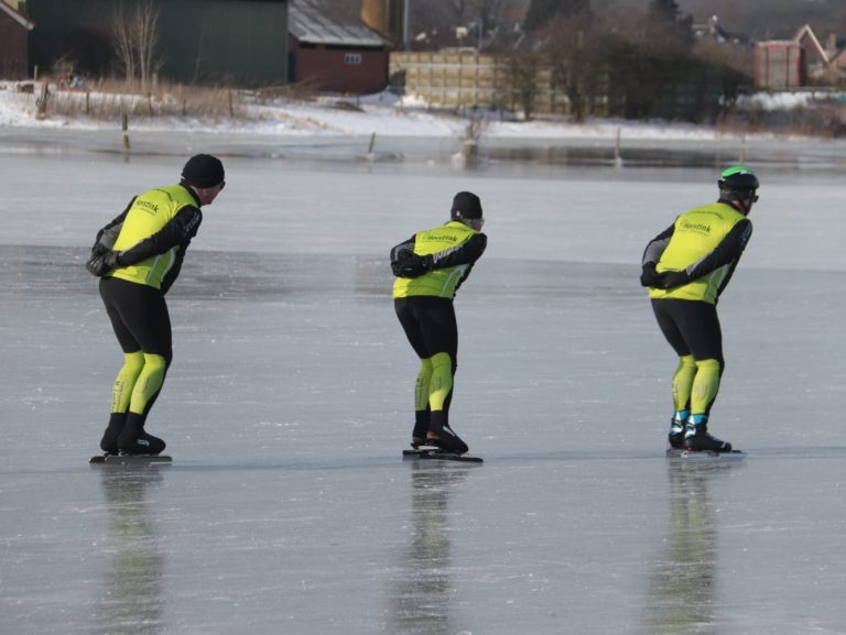 IJsmeesters Jan, Willy en Martin hebben de ijsdikte bepaald met nog één nacht vorst verwachten we dat donderdag 11 januari het ijs dik genoeg is om morgen om 10.00 uur de grote baan te openen! We hopen dat de baan open kan blijven tot 21.00.